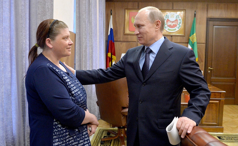 В ходе поездки в Хакасию Владимир Путин встретился с жительницей республики Надеждой Макаровой, которая во время «Прямой линии» обратилась к главе государства с просьбой об оказании помощи пострадавшим от пожаров.